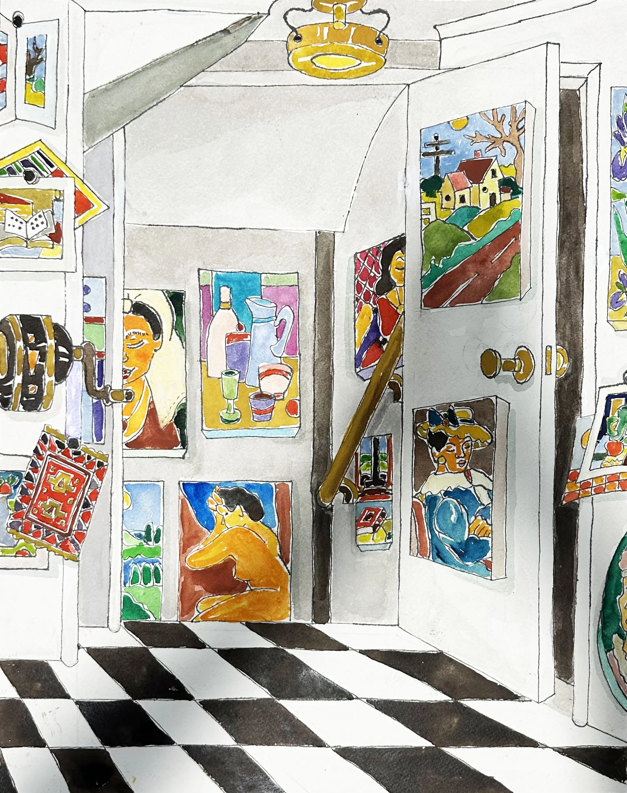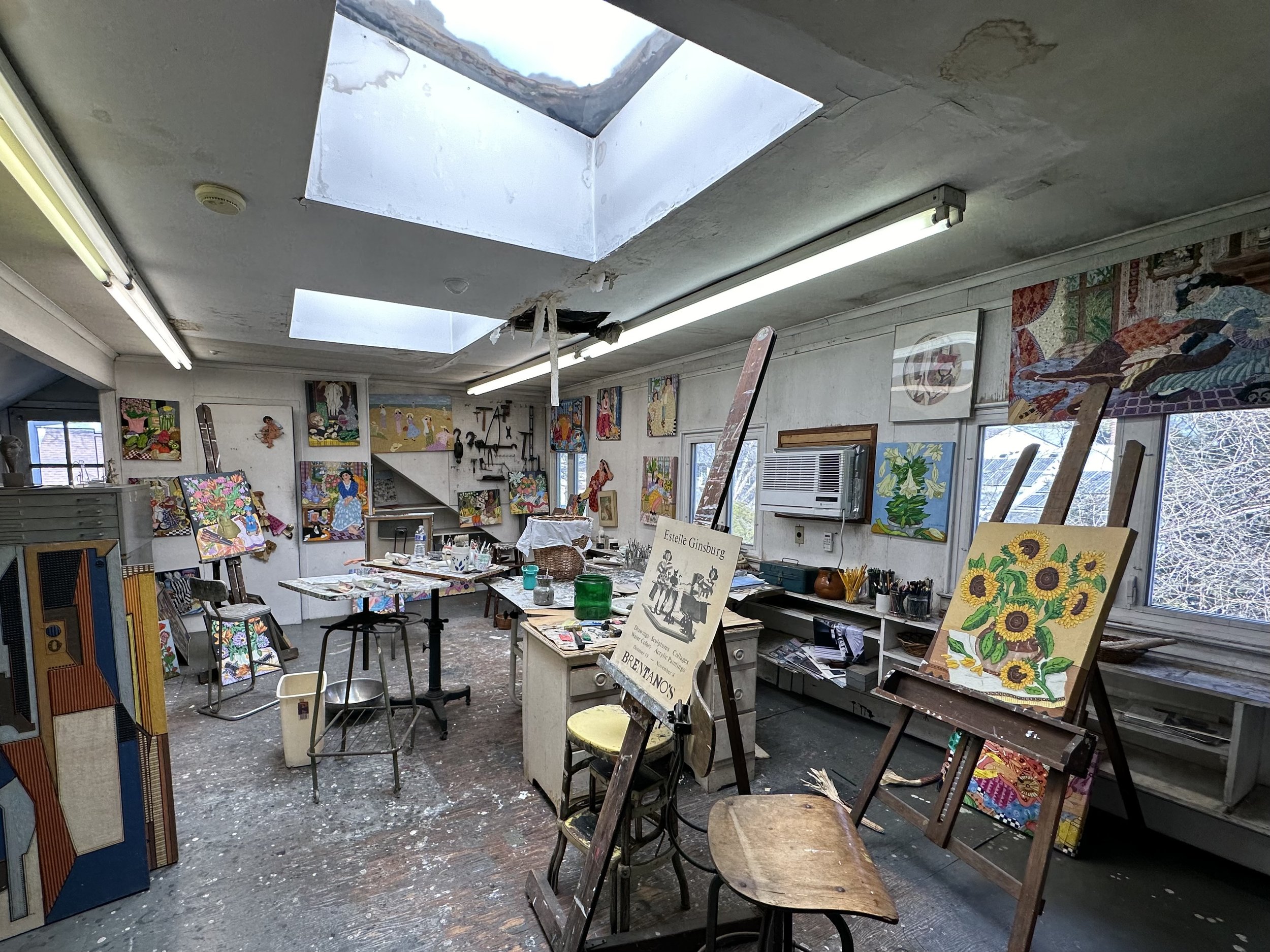 Estelle Ginsburg lived surrounded by art. Her studio, nestled on the top floor of her home, overflowed with paintings, sketches, and works in progress. Every wall and surface reflected her devotion to color, pattern, and form, creating an environment where art was not only made but lived.